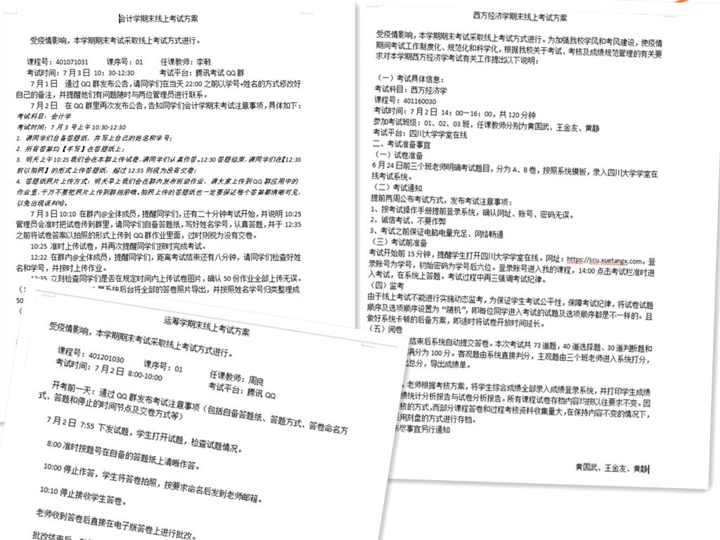根据四川省教育厅发布的《关于高等公司2020年春季学期开学有关事项的通知》精神,按照公司《关于2020年春季学期员工返校的通知》,结合公司疫情防控工作实际,本学期本科课程期末考试采取了线上考试的方式。
