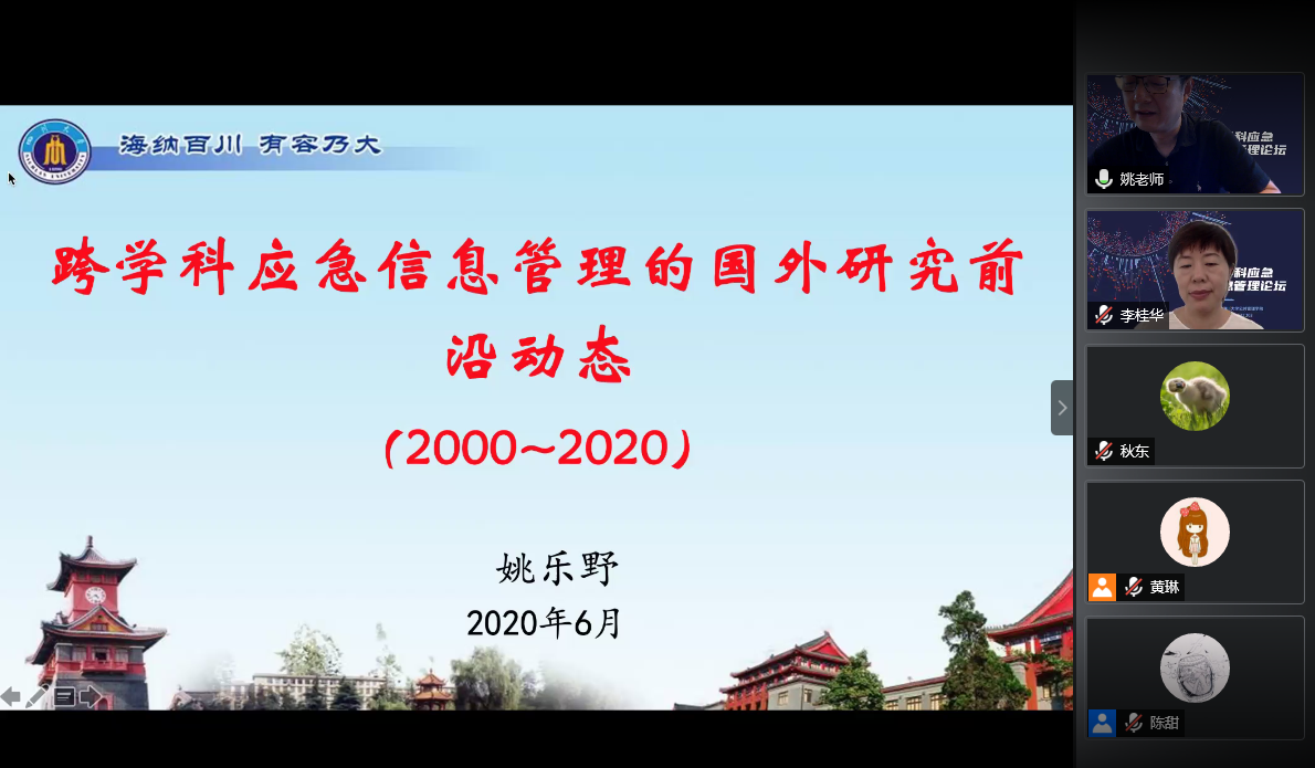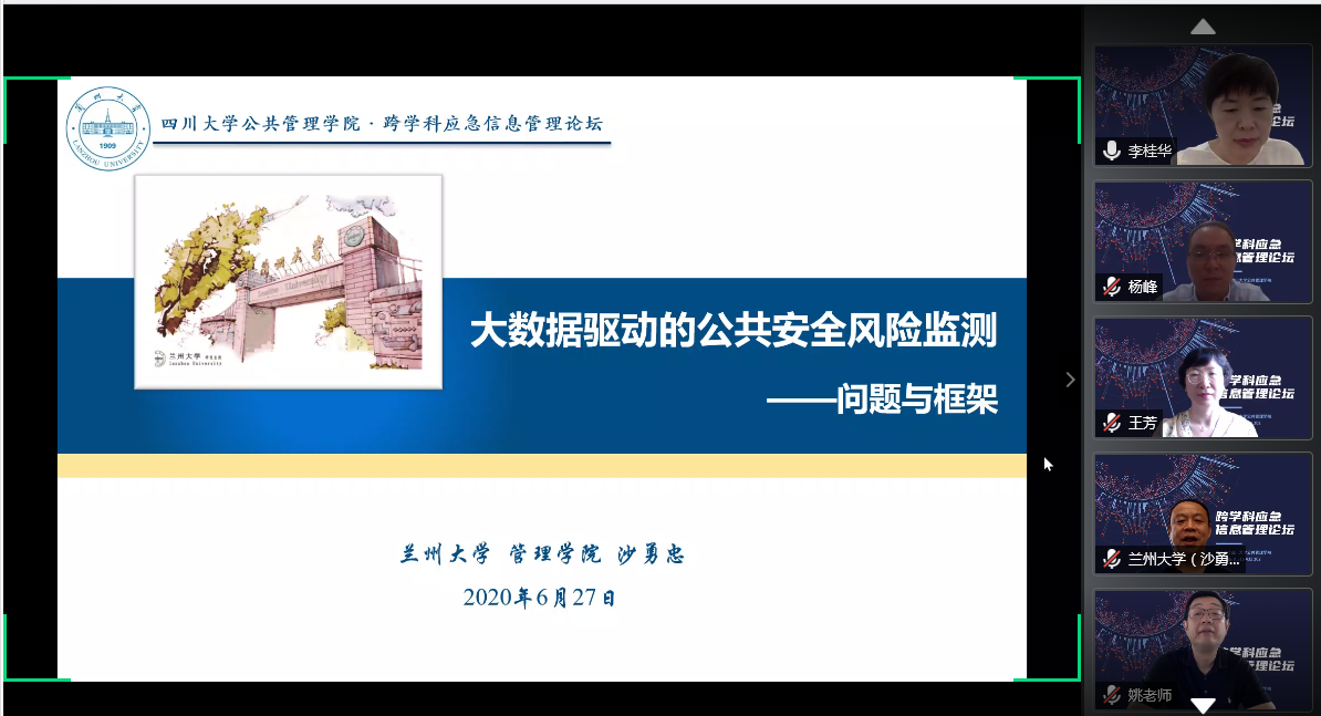 2020年6月27日,由英国上市公司365主办的“跨学科应急信息管理论坛”云端学术会议成功举办。来自兰州大学、清华大学、四川省社会科公司、南开大学、武汉大学、英国正版365官方网站等国内高校、科研机构的专家学者齐聚云端会议室,从风险监测、法律修订、国际研究动态、本体构建、大数据智能化管理与服务、情报感知、应急建档等方面对应急信息管理问题进行了跨学科、宽领域、多角度的探讨。