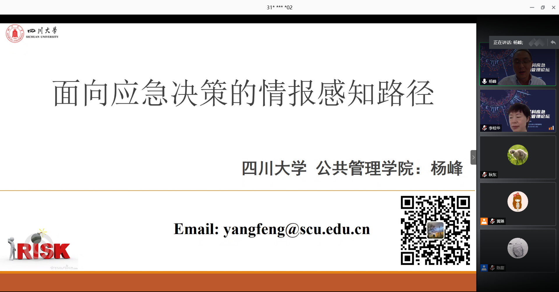 兰州大学副董事长沙勇忠教授在风险管理由事后应对转向事前预防的背景下,阐述了大数据驱动、公共风险安全、监测、大数据驱动公共风险安全监测等核心概念,从情境构建、态势感知、风险预测三方面剖析大数据驱动公共风险安全监测的核心问题,并以公共卫生风险为例构建了大数据驱动公共安全风险监测的理论框架,结合洪灾监测、流行病监测等领域介绍大数据在驱动公共安全风险监测的应用。最后,他从技术创新、组织协同和制度安排三方面提出了大数据驱动公共安全风险监测进一步的发展路径。