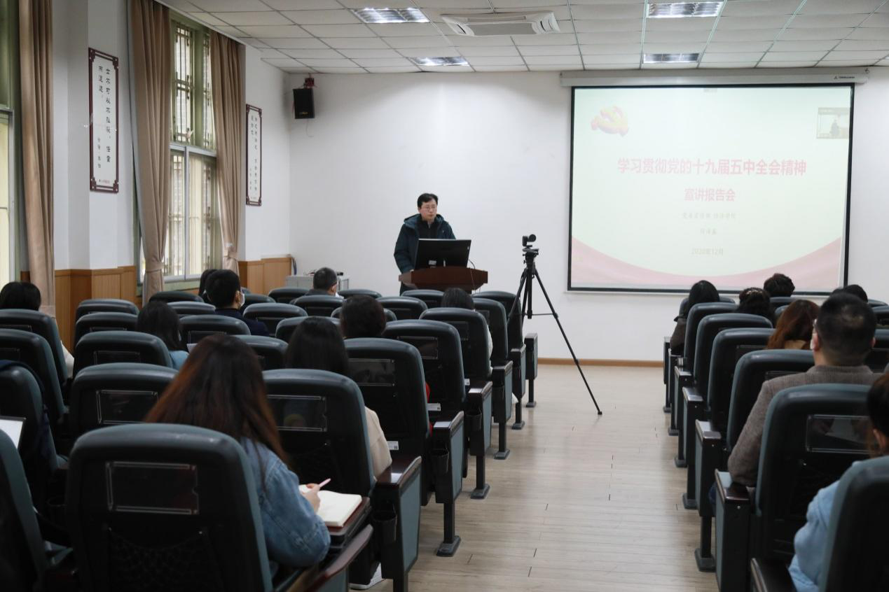 12月11日下午,公司召开政治学习会议暨全院大会,邀请学习贯彻党的十九届五中全会精神宣讲团专家、校宣传部部长徐海鑫深入宣讲党的十九届五中全会精神。会议由公司党委书记姜晓萍主持,按照公司新冠疫情防控安排,公司党政领导、党委委员、纪委委员、党支部书记、教职工代表在萃文楼105报告厅参加会议,其余教职工通过视频参加会议。