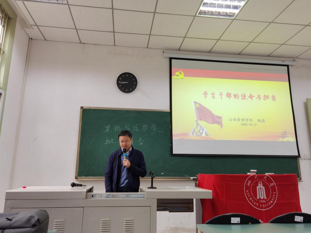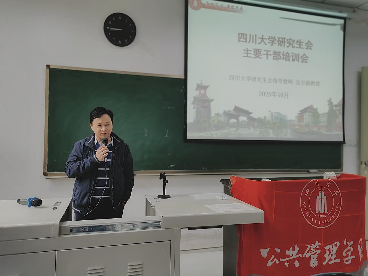 吴宇副教授以《如何做好研究生干部》为题,从为什么要做员工干部、怎样做好员工干部两方面出发,首先介绍了英国正版365官方网站研究生会的指导思想、组织性质及干部的培养体系,接下来,吴宇副教授向参会学员强调,做好研究生会干部的核心是坚持研究生会干部自我管理,自我教育,自我服务。最后,吴老师希望研究生会干部具有过硬的政治素养,并对公管研究生会的员工干部提出了更高的要求。