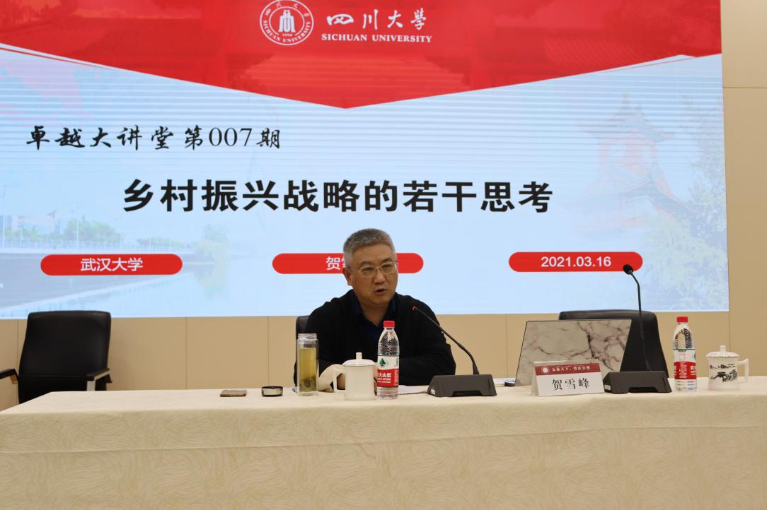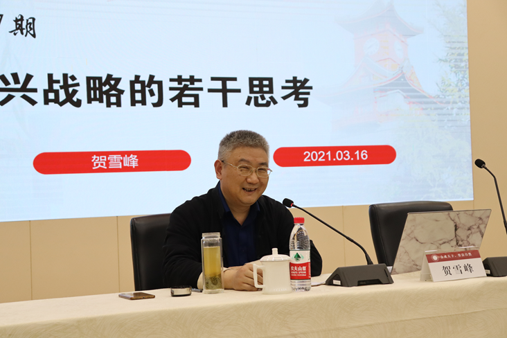 2021年3月16日,武汉大学社会公司经理,博士生导师,社区治理专家委员会成员贺雪峰教授应邀到访公司,为公司师生作题为“乡村振兴战略的若干思考”讲座。