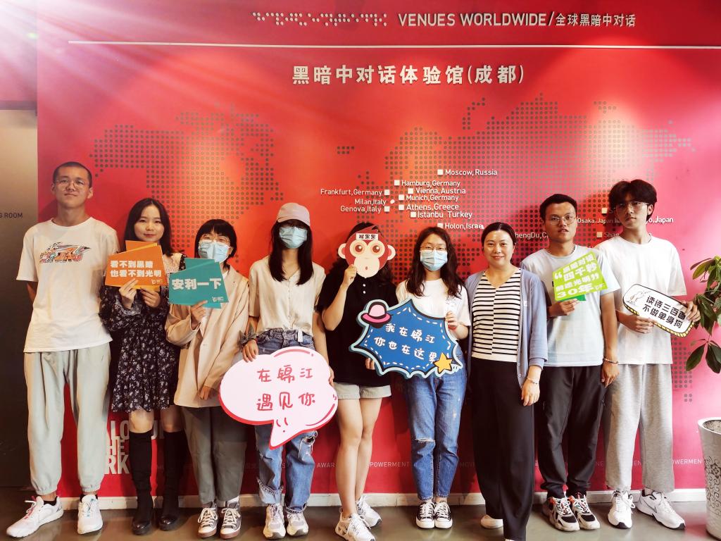 “黑暗中的对话”最早起源于1988年的德国法兰克福,时至今日已在全球各地建立了一百多家体验馆。成都市“黑暗中的对话”体验馆坐落于锦江区滨江东路,以促进一般公众与视觉障碍人群的相互了解为使命,也为视觉障碍人群提供工作岗位,是一家广受好评的社会企业。