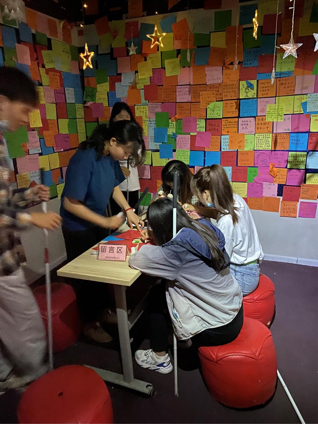 实践活动后,同学们围绕体验内容展开专业讨论。有的同学结合自己的切身体会,表达了对社会工作专业同理心的看法;有的同学从视觉障碍群体的社会生活环境出发,提出视障人群“赋权”的议题;有的同学由“黑暗中的对话”体验馆延伸讨论了社会企业的价值和意义。