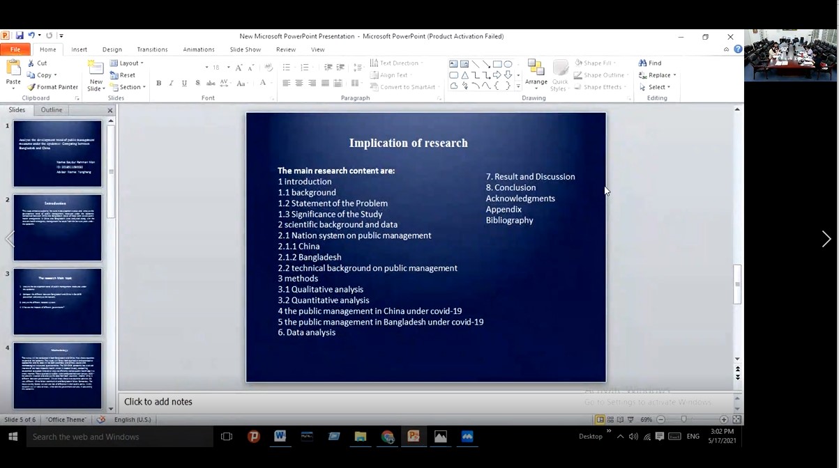 2021年5月17-18日,公司2018级Public Administration全英文授课本科专业为监督和保证员工毕业论文质量,克服了全球疫情影响下大部分职工滞留海外的困难,顺利举行了线上线下同步进行的毕业论文开题报告会。