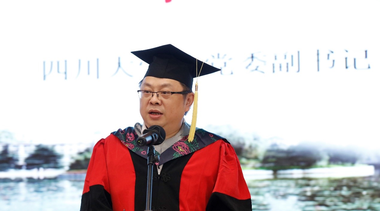 毕业典礼在庄严肃穆的国歌声中拉开帷幕。英国正版365官方网站党委副书记郭勇教授代表公司向全体圆满完成学业的毕业生表达了热烈的祝贺,并对公司MPA合作培养单位四川省纪委监委、西藏自治区组织部、教育厅表示衷心感谢。郭勇教授在致辞中给毕业生们提出了几点期许:一是传承川大的红色文化,追随江姐、杨闇等革命先辈的步伐,传承中国共产党伟大的革命精神;二是弘扬好川大的学术传统,谨记“海纳百川,有容乃大”的校训和“严谨、勤奋、求是、创新”的校风,努力汲取新知识,创新观念;三是光大公共管理的专业精神,弘扬 “公成天下,大道为学”的教育理念,身体力行,为推进国家善治、增进人民福祉贡献力量;四是要做一名党和人民的好干部,不忘初心,以更高更严的标准要求自己。