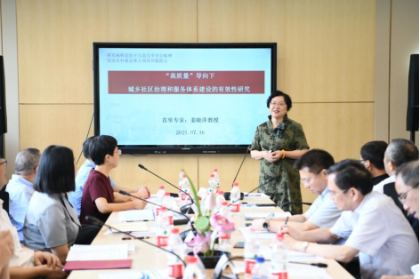 本次开题报告会围绕“高质量”导向下城乡社区治理和服务体系建设的有效性,推进基层治理现代化进行了广泛而深入的学术交流,与会专家对课题研究内容给予了充分肯定,也提出了许多宝贵建议。姜晓萍教授表示,课题组将认真吸收和消化专家们提出的意见和建议,严格按照全国哲学社会科学规划办的要求,扎实开展研究工作,如期高质量完成研究任务。