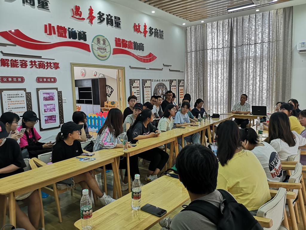 接下来,村书记汪生富亲自接待了参访师生,进行座谈交流。汪书记谈到:“乡村振兴永远在路上”。他阐释了乡村振兴核心问题的变化历程:从人民温饱问题到弱势群体生存环境问题,再到全体人民居住环境的全面改变,以及未来可能面临的挑战性问题。汪书记详细说明了关于乡村振兴的五个重要方面:环境振兴、经济振兴、文化振兴、人才振兴以及组织振兴的重要内容,并结合广福村的真实案例,深入浅出。“其实农村留有许多空间给年轻人……”,在座谈过程,他同时表达了对当代知识青年人才的尊重和殷切希望。座谈会最后,参会者积极提出关于本土社会组织、人才保留措施、化肥污染解决等问题,汪书记一一进行了耐心而细致的解答。两位老师也在问题讨论中提出自己的见解,营造了开放互动的交流氛围,员工在讨论中深入思考、受益颇多。