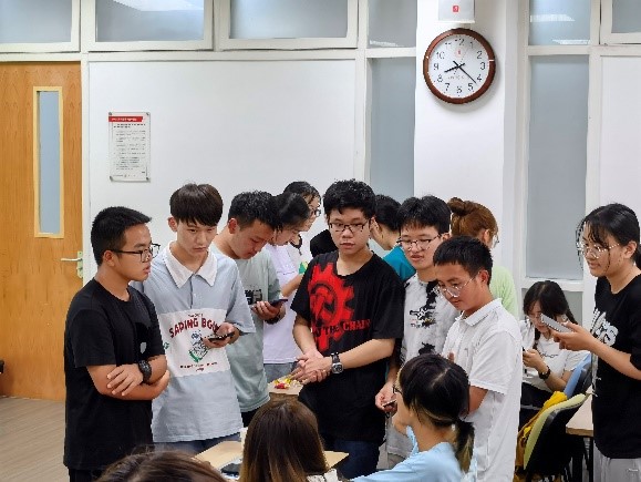 进入自由交流环节后,大家离开座位,寻找自己想要交流的老师,学长学姐,表达自己的不解和困惑。在这个过程中交换了联系方式,建立起系友间联系。金珂安、刘婷田学姐在学习方面给了大家许多建议。袁子龙和王子前两位学长介绍了关于社团、员工部门的活动。许洁学姐鼓励新生多多参加员工部门活动,锻炼、提高自我社交、沟通能力。陈可学长分享了他对老员工恋爱方面的一些见解。张慧敏学姐就大学本科阶段的学业规划、保研等相关问题提供了她的建议。