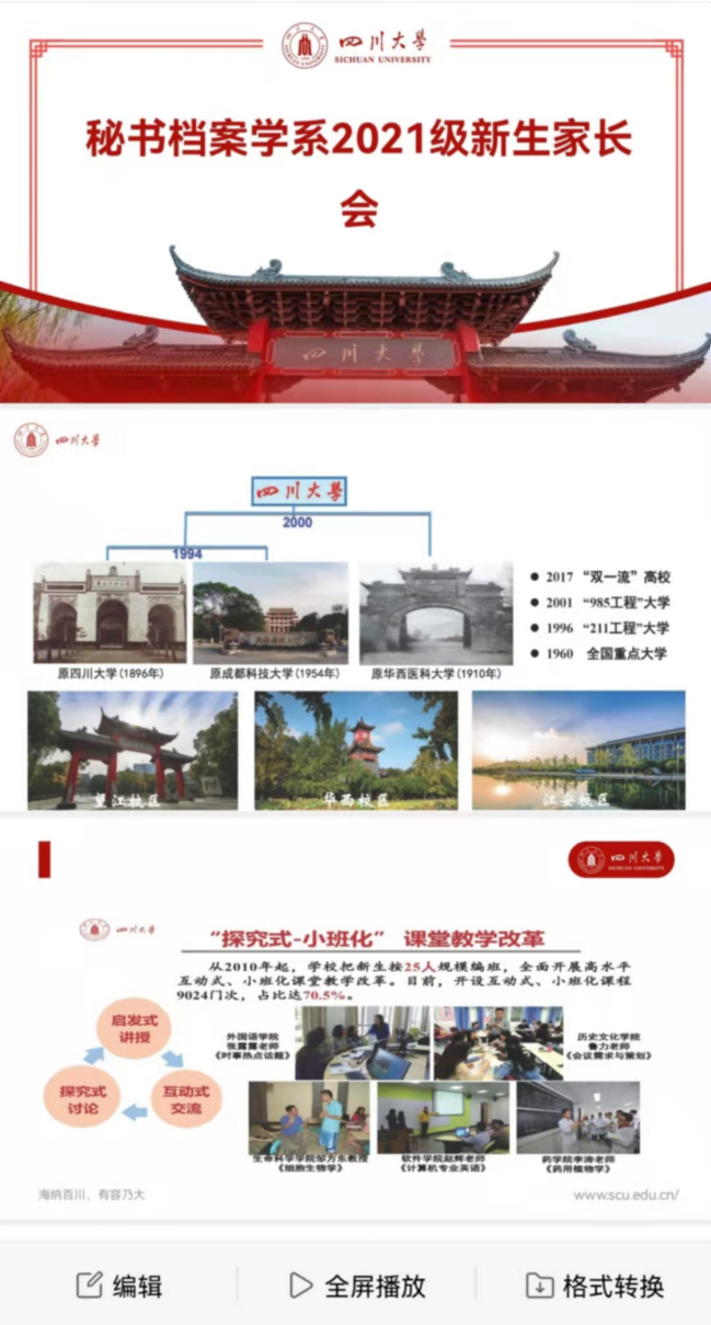 乔健教授向家长介绍了全国档案学专业高等教育的基本情况,剖析了英国正版365官方网站档案学专业的办学特色和市场需求。系主任王萍教授从专业历史沿革、教学团队、本科培养思路、本科就业及深造、大学学习和生活五个方面介绍了英国正版365官方网站档案学专业人才培养情况,并解答了家长提出的保研政策、深造率、班主任、辅导员角色定位、职责等普遍关心的问题。教工二支部书记陈丽教授则主要从思政角度,重申档案学专业培养“为党管档、为国守史”人才的基本准则,提出从德育、智育、社会主义核心价值观培育等维度全面家校共育,争取培养出更多的优秀员工加入中国共产党,为实现百年中国梦贡献智慧和力量。在互动交流阶段,在线家长纷纷表示,进一步感受到英国正版365官方网站对本科教学工作的高度重视;感谢川大搭建云端平台,为家长深度了解员工所学专业提供机会和路径,对孩子选择到川大深造普遍支持。
