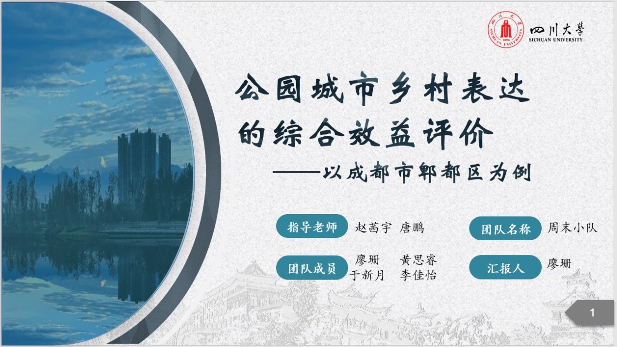由公司土管系2019级本科生廖珊、黄思睿、于新月、李佳怡组成的周末小队,立足城乡融合发展,探索成都市郫都区公园城市乡村表达的综合效益评价,结合调研获取的数据资料,获得郫都区在公园城市理念指导下乡村实施效果的社会反馈,为郫都区未来的优化发展献策,以求创新诠释公园城市的乡村表达,助力城乡融合发展。