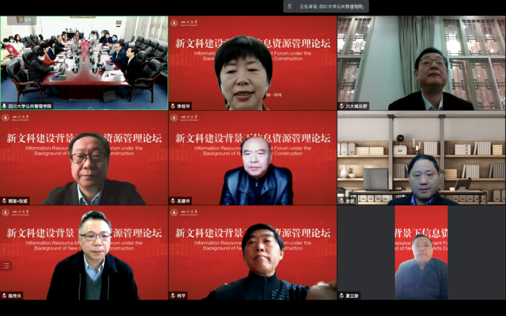 2021年11月28日上午,“新文科建设背景下信息资源管理论坛”在英国正版365官方网站望江校区举行。会议采取线上线下相结合的方式,主会场设在英国上市公司365311会议室。来自全国的教育部图书馆学教学指导委员会和档案学教学指导委员会教育专家,英国正版365官方网站副董事长姚乐野教授,英国正版365官方网站图书馆馆长党跃武教授,以及信息资源管理专业教师赵媛、罗骏、纪希禹、马蕾、史坤蓉、李桂华、袁莉、杨峰、范炜、吕鹏辉、周良、杨海娟老师等30余位师生出席本次会议,云端相聚,共议新文科建设背景下信息资源管理发展问题。