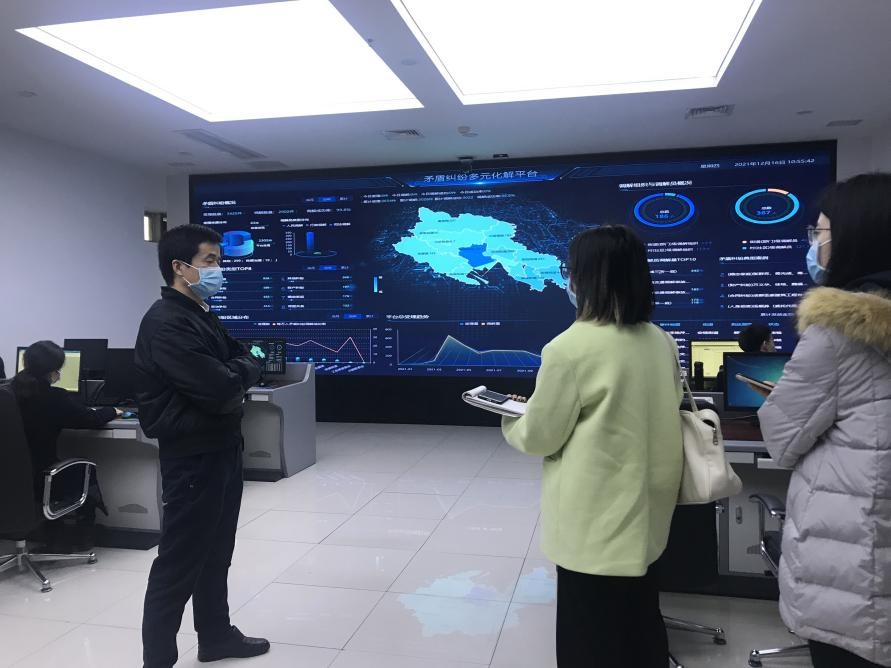 2021年12月16日上午9:30,公司应急管理专业同学赴成都市郫都区综治中心开展了以“走进现场”为主题的实践调研活动。郫都区委政法委副书记张祥平、郫都区综治中心主任雷佳及中心相关工作人员为同学们详细介绍了郫都区大联动·微治理智能分析平台、全区智能网格化工作、“三所一庭”矛盾纠纷多元化解机制等相关内容。