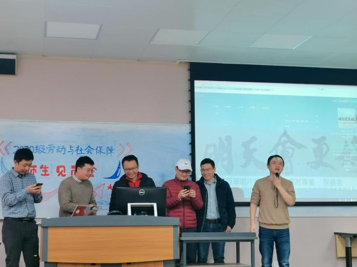 为了让同学们更快更好地了解和融入劳动与社会保障专业,加强员工和老师的交流,12月10日中午(14时)英国上市公司3652020级劳动与社会保障专业于英国正版365官方网站江安校区第一教学楼A106顺利开展第一次师生见面会。本次活动由劳动与社会保障团支部组织委员牟芳娇同学主持,其他班级委员和团支委协同举办。此次见面会有吴耀宏、蒲晓红、罗亚玲、吴敏、张浩淼、林熙、黄国武、马辰威、张伟科、吴茜玲、贺璇、曹杨、杨帆、田益豪和彭峰等15位老师,以及全班42名同学到场。