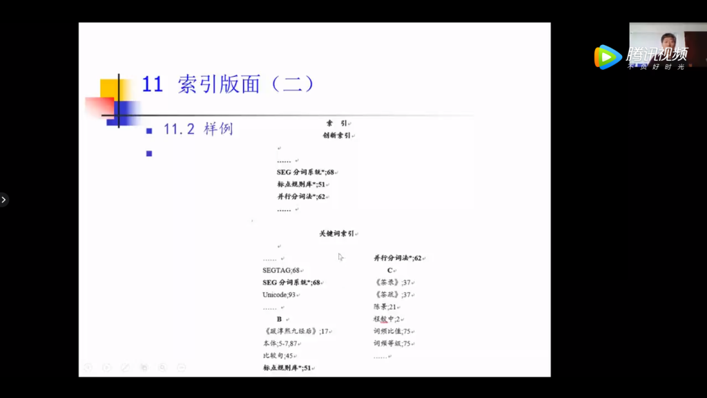 2021年10月18日下午,博士学位论文索引大赛指导讲座(复旦站)于腾讯会议成功举办,讲座题名为“学位论文内容索引编制规则与国家标准解读”,由复旦大学图书馆/中华古籍保护研究院副教授薛春香老师主持。中国索引学会常务理事、中国索引学会创新实践基地常务副主任王雅戈老师担任主讲嘉宾。