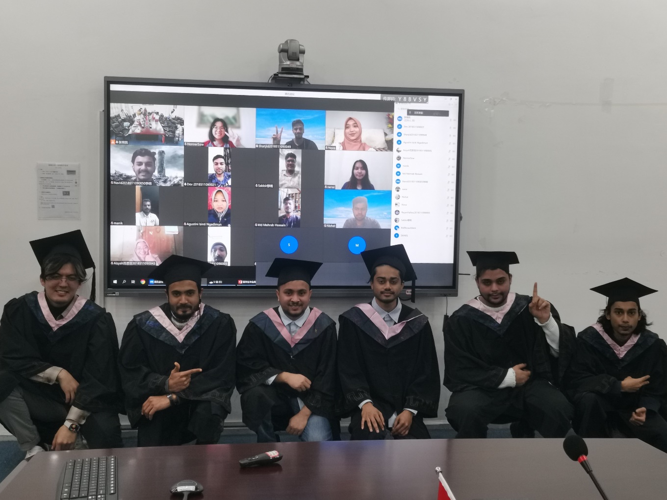 毕业典礼在依依不舍地氛围中完满结束,活动后,线上线下的毕业生们与老师们合影留念。