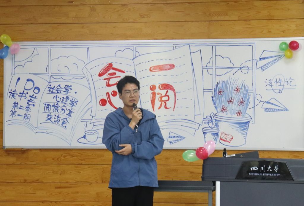 从第一位张钰莹同学讲述“弗洛伊德五大心理治疗案例”,带领同学们洞察“精神分析学派”心理学的世界;到第二位赵志邦同学推荐费孝通先生的《江村经济》,分享对于我国传统农村社会的深层结构与功能的看法;再到后面的同学们对红河猴实验、社会发展、女性主义等一系列话题的讨论与思考……在场的嘉宾老师以及同学们都投入到热情洋溢的分享交流氛围中。
