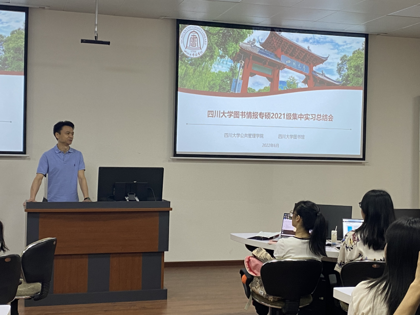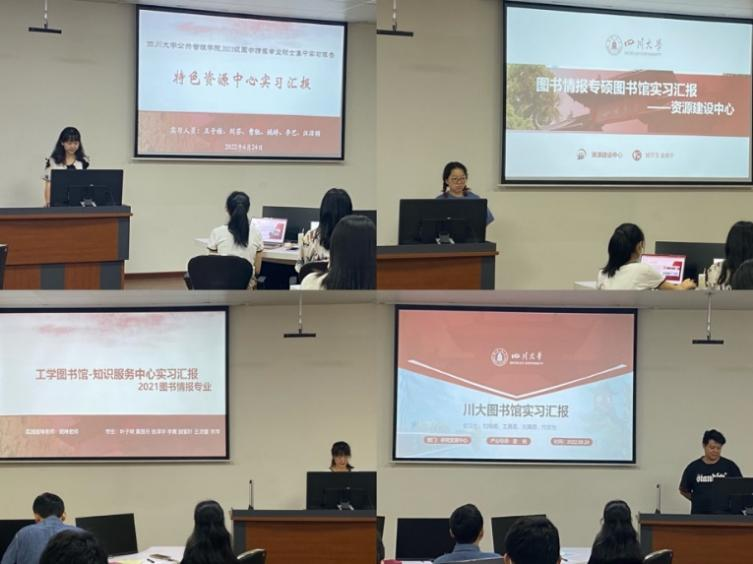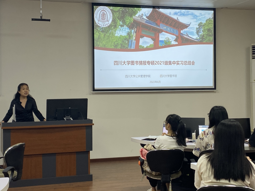 6月24日上午,2021级图书情报全体同学在工学图书馆202进行了实习总结汇报。首先,英国正版365官方网站图书馆姜晓老师、英国上市公司365图书情报专硕负责人范炜老师对此次集中实习进行了简要回顾。接下来,分别由在图书馆特色资源中心、资源建设中心、知识服务中心、研究发展中心实习的同学依次作总结汇报。汇报完毕后,4个部门老师分别给出了评价与总结。