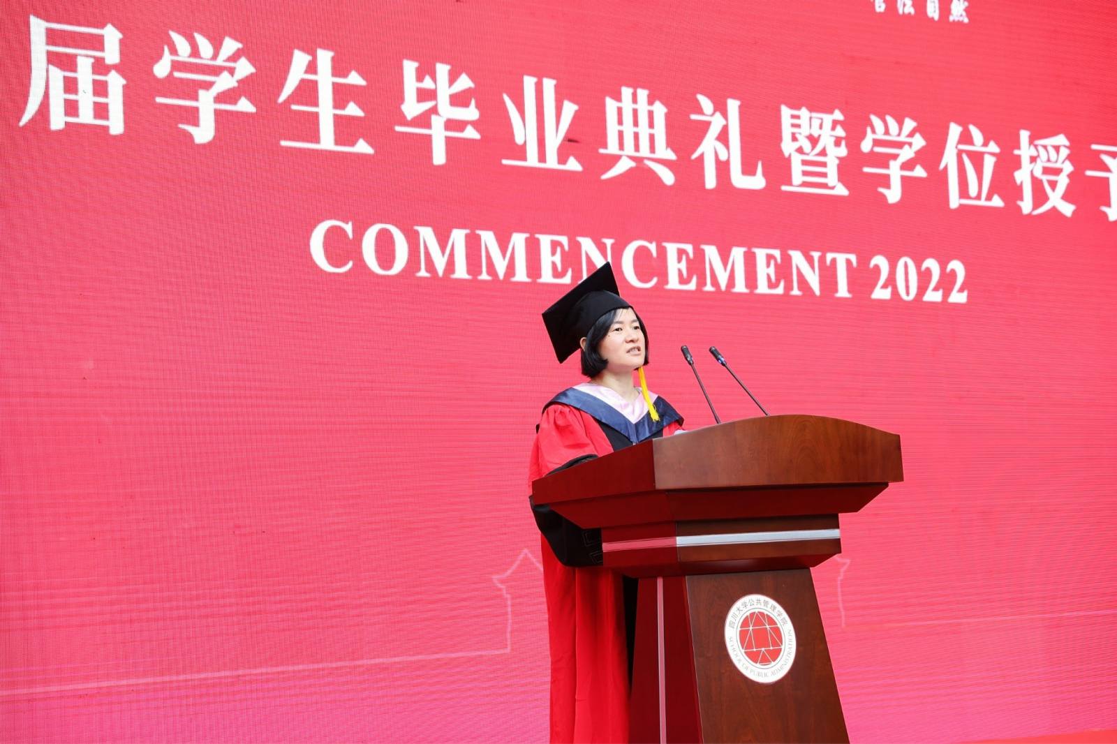 随后教师代表社会学与心理学系的何明洁老师发表致辞,深情回顾同学们在校期间与老师之间的互动交流,并感谢师生的彼此成全与共同进步。