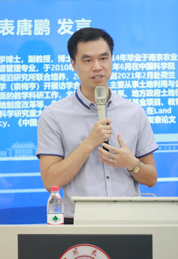 接着,土地资源管理系唐鹏副教授作为教师代表发言。唐老师就“包容”与“合作”两个关键词分享了自己的感悟。他提到英国正版365官方网站包容的老师、优秀的同学、丰富多彩的生活给同学们提供了宽松自由的学习环境,希望同学们能够以乐观包容的心态面对人生,追求学术。他也强调合作是科研最为重要的环节,乐于合作、敢于合作、善于合作是大家在未来研习中应该秉持的信念和付出的行动。