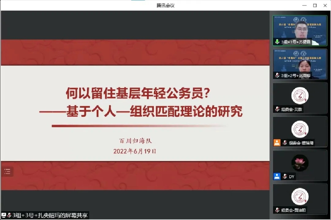 在行政管理系郭金云副教授的悉心指导和行政管理系各位老师的全力支持下,2019级行政管理专业本科生赵雨婷、苏健骉、扎央昭玛和2019级土地资源管理专业本科生蒋忻玲等四位同学组成的“百川归海队”,创作完成了高质量案例分析报告《从单打独“兜”到齐心“合”力:社区多元服务何以实现价值共创?——以成都市郫都区社区合伙人模式为例》,以复赛第一名的成绩进入决赛。在决赛中,该队在四个小时内完成作品《何以留住基层年轻公务员?——基于个人—组织匹配理论的研究》,并进行答辩展示,最终斩获一等奖,充分展现了公司学子强烈的家国情怀和扎实的学术素养。