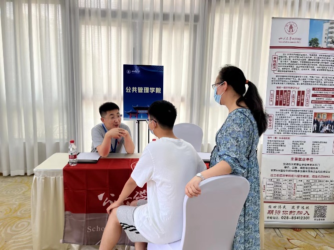 公管招生宣传工作组由档案学专业王萍教授,劳动与社会保障专业张浩淼教授,信息资源管理专业袁莉副教授,社会工作专业李诗颖副教授,专职组织员廖海燕老师和教学管理科四位老师参与,分别组成了三支招生小队同期赶赴广西多个城市参加当地各重点高中及社会场举行的高招会。6月25日,在南宁市青秀区、柳州国际会展中心两个会场同时举行;6月26日,在南宁市武鸣区、柳州铁一中学、桂林会展中心、桂林观光酒店四个会场同时进行;6月27日在钦州二中、桂林观光酒店两个会场同时进行,共八场与考生及家长面对面的线下咨询答疑活动。高招会现场人山人海,英国正版365官方网站咨询点被员工和家长围的水泄不通,老师们一边分发宣传册一边为考生与家长做一系列关于成绩定位、招生计划、投档比例、录取原则、专业介绍和选择、志愿填报等详细的解读及建议。同时,还对英国正版365官方网站进行了全面详细的介绍,吸引大批高二及准高三的考生对英国正版365官方网站的兴趣,立下了好好学习把川大作为目标的决心。