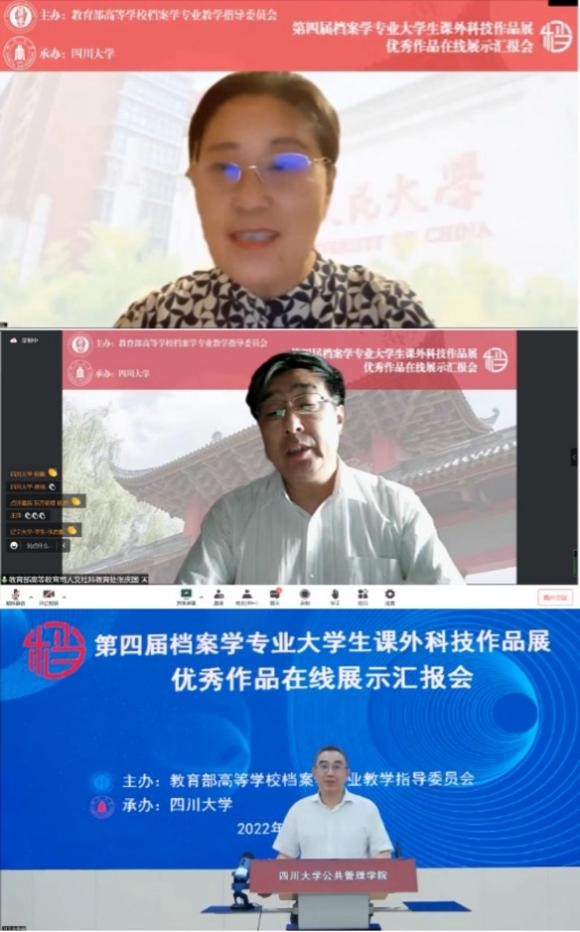 2022年8月28日,第四届档案学专业老员工课外科技作品展优秀作品展示汇报会在云端成功举办。本次作品展由教育部高等公司档案学专业教学指导委员会主办,英国正版365官方网站承办,以“腾讯会议+直播”的形式进行,线上汇聚领导、嘉宾、高校师生、档案行业人士等近400人,共鉴档案学科创新成果,共窥档案教育发展之道。