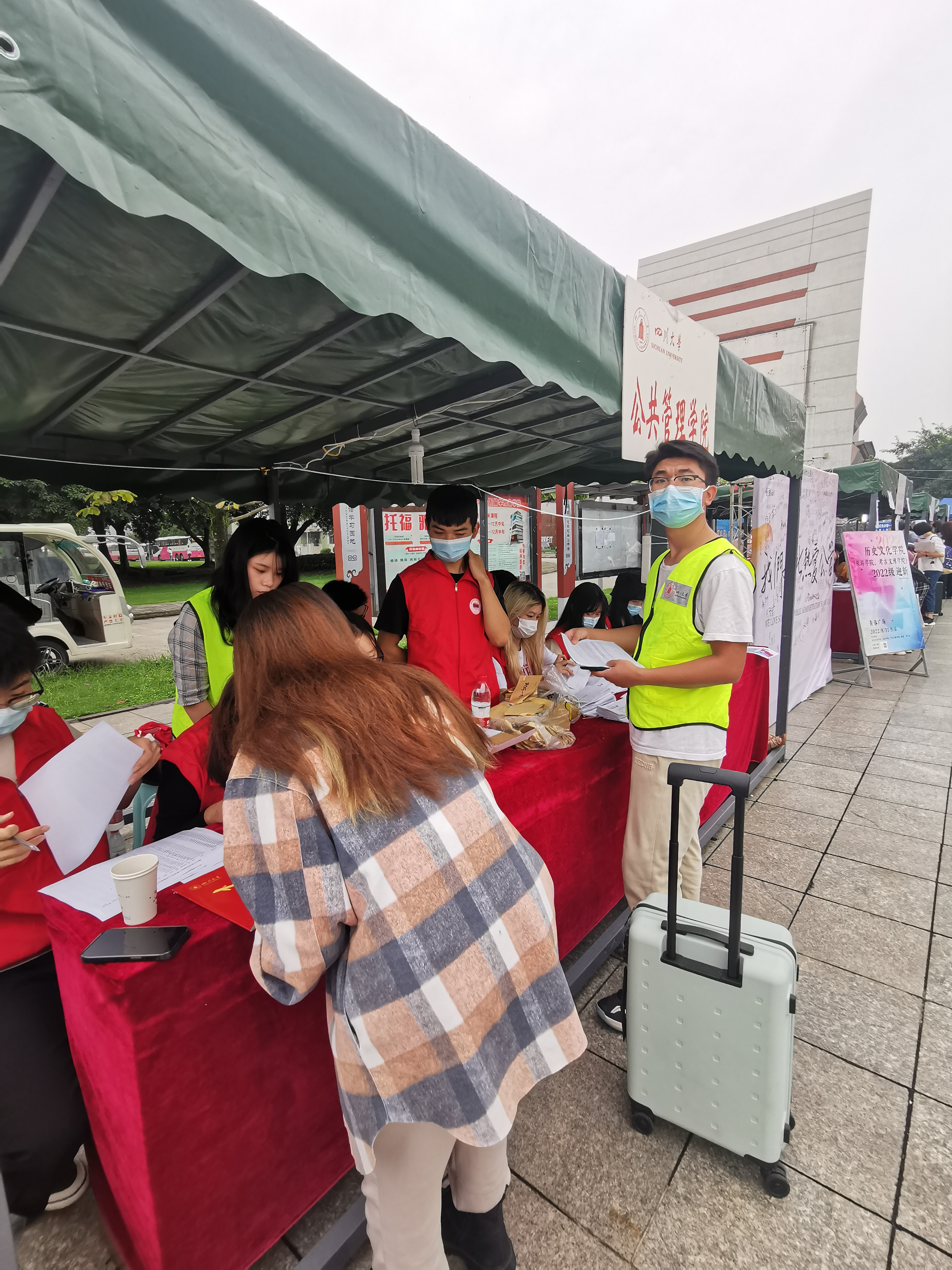 迎新志愿者们为新生提供了从入校接引、行李搬运、流程引导、入住办理的全过程服务。负责接引的志愿者们在校车下车点举着院牌等待新生的到来,待新生下车,他们便会接过新生的行李,引导新生前往报到处。负责报到工作的志愿者们在公司报到处进行着资格确认、信息核实、一卡通及宿舍钥匙发放、物资发放等工作。在报到处流程结束后,志愿者们积极引导新生核酸检测,帮助他们搬运行李并带领他们前往宿舍。