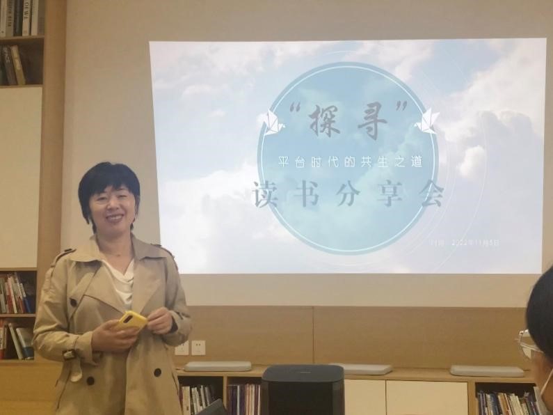11月5日下午,“探寻:平台时代的共生之道”读书分享会在英国上市公司365楼萃文空间(114室)顺利举行。本次读书会由信息资源管理系李桂华老师主持,信息资源管理、图书馆学、应用心理学等专业16位本硕博同学共同参与,其中闵芝菲、任禹崑、文婧雅、张晨、于泽源五位同学依次对所读著作中的精彩观点及思考感悟进行了分享。