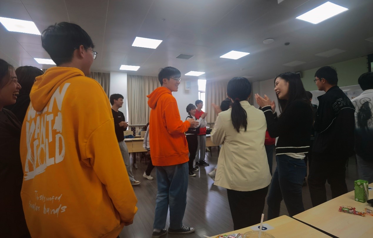 紧接着,是互动游戏环节。本环节共设置了“数字陷阱”和“五毛一块”两个游戏。游戏全程紧张刺激,全体师生均积极参与其中。通过趣味游戏,不仅拉近了师生之间的距离,更让老师和同学们有了更多、更进一步的交流。