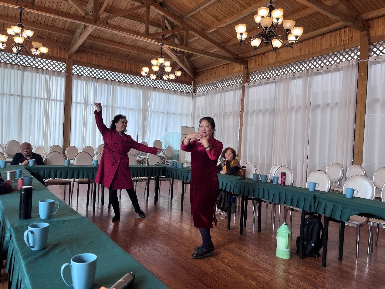最后,退休教师们进行了唱歌、舞蹈、诗歌朗诵等文艺表演,并合影留念。