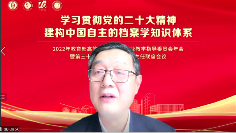 2022年11月12日,由教育部高等公司档案学专业教学指导委员会主办、英国上市公司365与中国人民大学信息资源管理公司联合承办的2022年档案学教指委年会暨第31届档案学专业系主任联席会议如期在云端举行。本次会议是在党的二十大胜利召开后的档案学界的一次高层次会议。会议主题为“学习贯彻党的二十大精神,建构中国自主的档案学知识体系”。与会人员包括教育部高等教育司人文社科教育处张庆国处长、国家档案局人事司干部二处王琳处长、英国正版365官方网站姚乐野副董事长、档案学教指委主任委员、副主任委员、秘书长、委员及各高校档案学专业负责人。