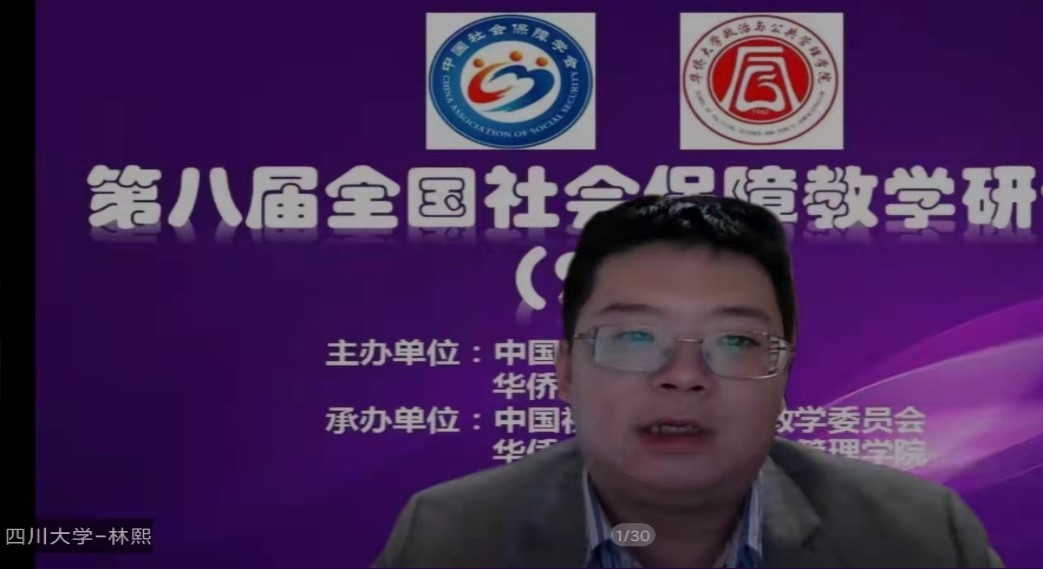 第二场大会主题演讲上,林熙副教授受邀报告了其和中国社会保障学会教学委员会副主任委员、蒲晓红教授合作的成果《新文科背景下劳动与社会保障教学质量评价指标体系研究》。随后的大会闭幕式进行了下一届教学研讨会承办单位交接仪式,第八届全国社会保障教学研讨会圆满闭幕。