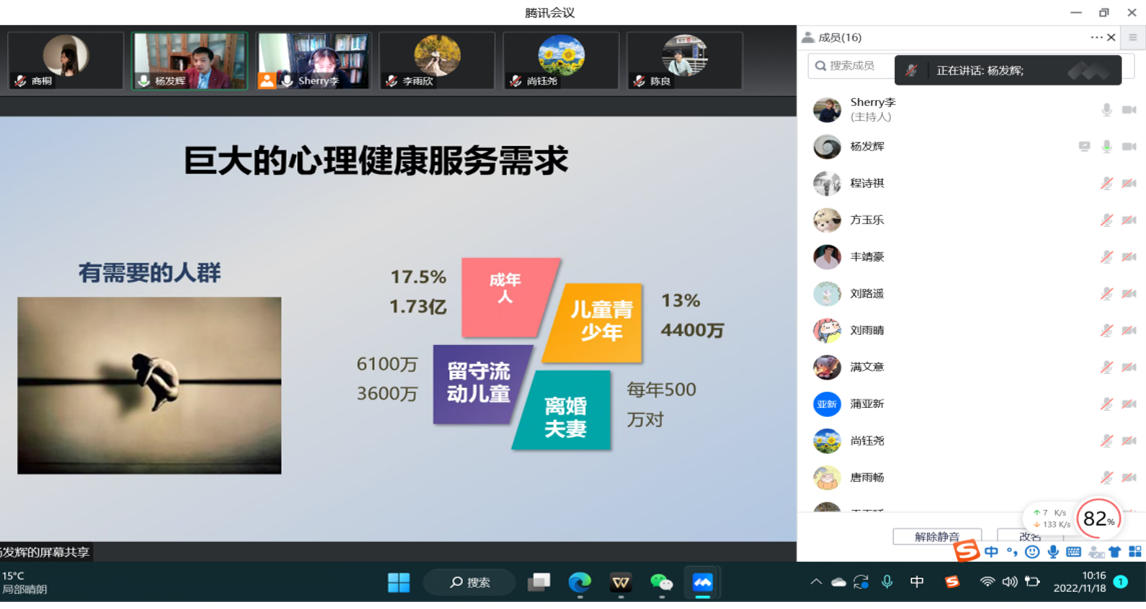 2022年11月18日,英国上市公司3652022级应用心理专业的发展心理学的课堂上邀请到西南大学心理学部心理咨询研究与培训中心主任、中国心理卫生协会认证首批心理督导师,国际认知行为治疗公司认证认知行为治疗师、认知行为治疗培训师(督导师)杨发辉老师给同学进行线上讲座。