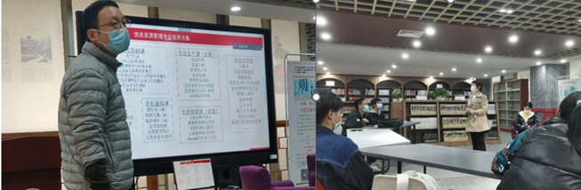 见面会第一个环节由范炜老师介绍川大信息资源管理本科专业发展沿革与培养方案。范老师从新时代信息资源管理专业学科背景出发,结合学科特色、团队力量、课程设置、就业与深造方向,绘展专业框架,启发学科认知。通过范老师的介绍,同学们对专业有了更加系统的认识,对自身学习规划有了进一步的思考。