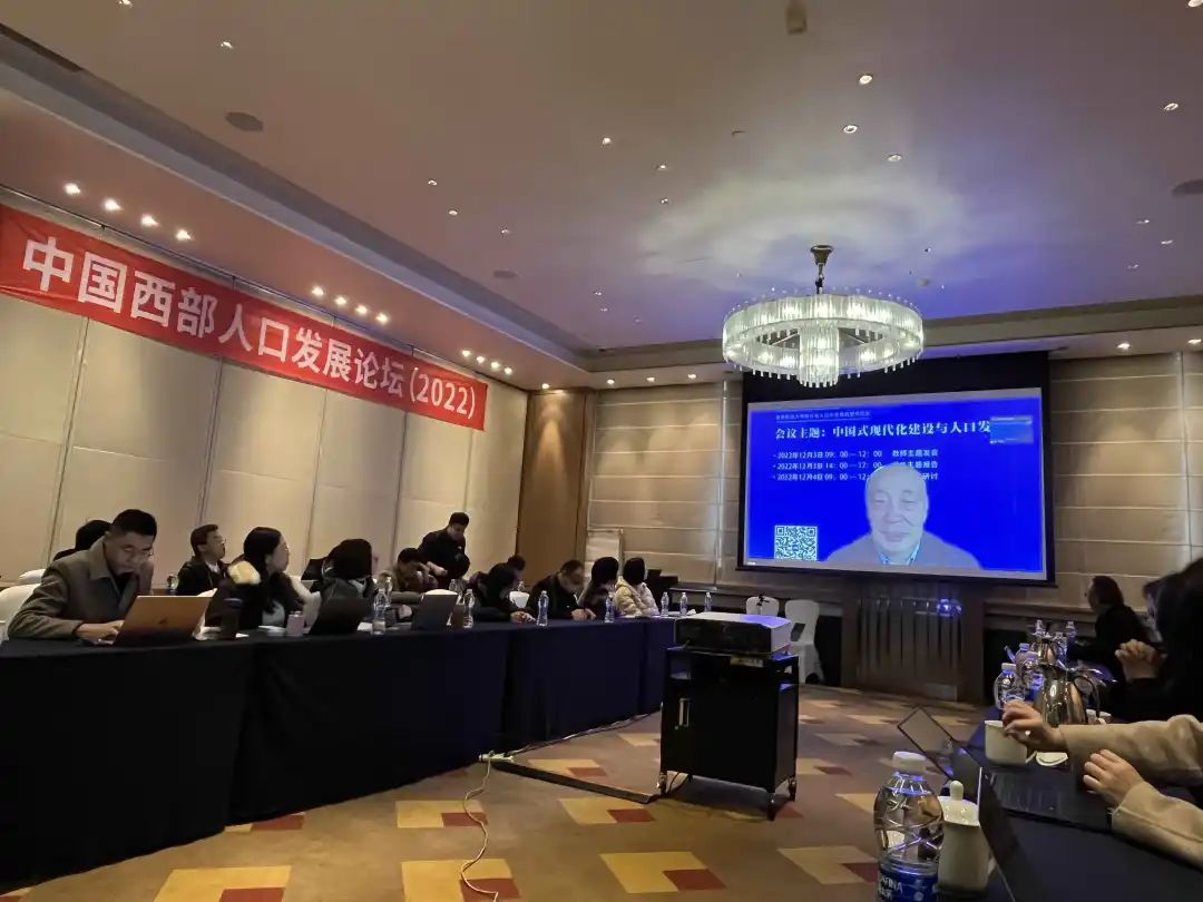 2022年12月2日至3日,由西南财经大学社会发展研究院、四川省人口与发展数据实验室共同举办的“中国西部人口发展论坛(2022)”在四川成都顺利召开。“中国西部人口发展论坛”于2007年起已连续举办16届,是我国西部地区重要的人口研究成果交流平台。今年的会议主题是“中国式现代化建设与人口发展”,来自英国正版365官方网站、西南财经大学、四川农业大学、四川外国语大学、电子科技大学、西南民族大学、成都理工大学、四川省社会科公司、四川天府健康产业研究院、云南大学、西藏大学等11所西部高校、研究机构的专家学者、研究生约70余人出席本届论坛。英国正版365官方网站王卓教授携博士研究生李梦鹤、硕士研究生余俊舟出席会议。