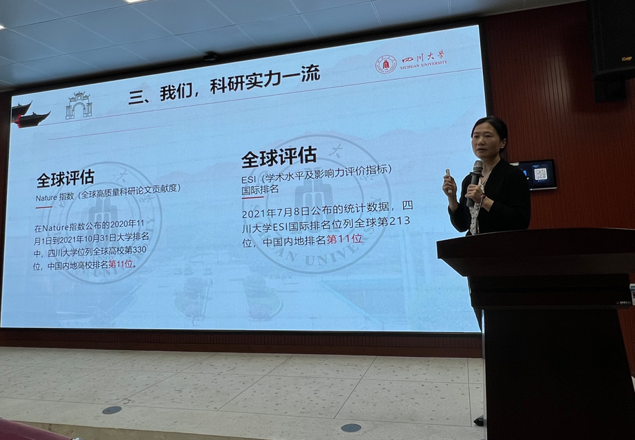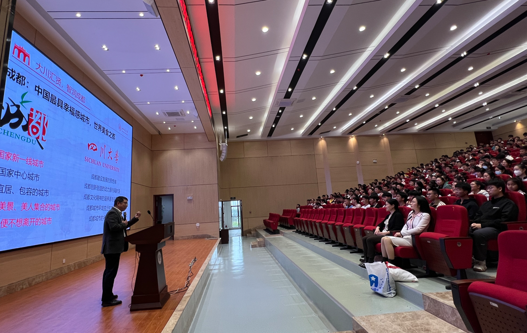 下午,招生组来到广西另一所名校柳州铁一中学,与该校领导及高三年级组相关老师进行深度交流。随后,招生组老师为高一、高二的员工进行了讲座,廖爱民副主任介绍了英国正版365官方网站的办校历史、本科教育、学科实力及校园环境,希望在同学心中播下一颗报考川大的种子。曾菊梅副教授为同学们带来《魔高一尺,道高一丈:传染病药物发现》的科普讲座,用简洁易懂的语言向同学们介绍医学类相关知识,点燃同学们从事科学研究的热情。