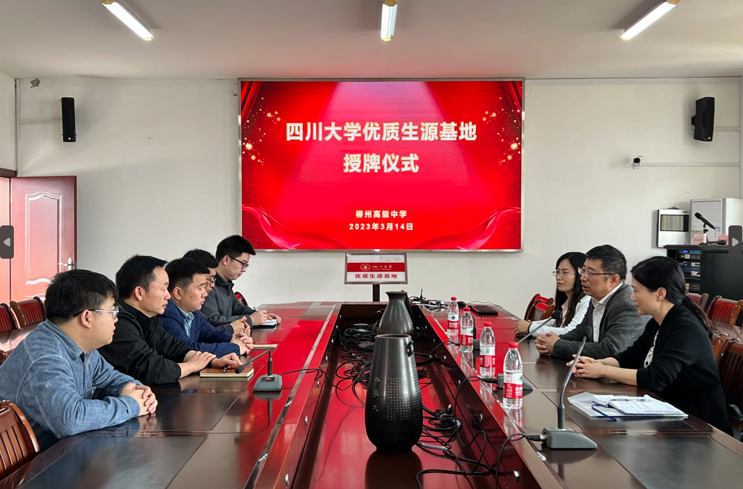 3月14日上午,招生组拜访了近年来川大在桂录取人数最多的柳州高级中学,与公司教务处主任及高中各年级负责人进行座谈、介绍英国正版365官方网站招生政策,就新高考改革和员工选科等方面进行深入交流,并与柳州高级中学签订优质生源基地协议并举办了授牌仪式。