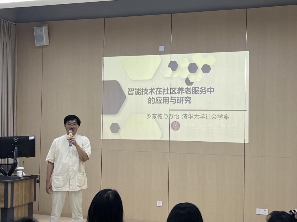 9月14日下午,清华大学社会学系罗家德教授应邀在公司210室开展了一场题为“智能技术在社区养老服务中的应用及研究”的学术讲座。公司党委副书记罗亚玲教授、副经理袁莉副教授以及张浩淼教授、李丹教授、赵英教授、沙治慧教授、马缨研究员、郑莉副教授、何明洁副教授与来自公共管理、图书情报与档案学、社会学、社会工作等专业的员工共50余人参加了讲座。