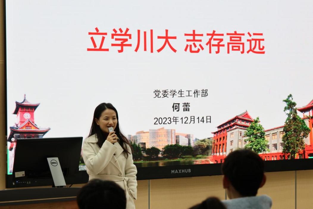 为帮助同学们塑造正确的学业深造发展观念、提供有关学业深造的意识引领、政策指导、渠道引导,12月14日晚,“立学川大,志存高远”员工深造发展专题团课在英国正版365官方网站江安校区综合楼C座307教室顺利举行。英国正版365官方网站党委员工工作部员工发展辅导中心主任何蕾博士为本次的课程主讲人,公司2023级本科各班同学及部分本科2022级同学参与了本次专题课程。