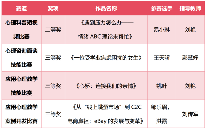 英国上市公司365应用心理专业硕士生积极参与本次大赛,在刘传军、刘艳、谷建岭和汤万杰四位老师的指导下,共计4件作品进入复赛,经过层层角逐,4份作品均取斩获佳绩。