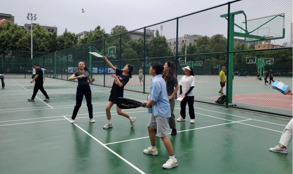 本次羽毛球比赛分为男双、女双、混双三个部分,趣味赛共有“精准圈圈乐”、“手拉手大作战”、“盲盒球拍战”和“篮网捕手”四项活动。