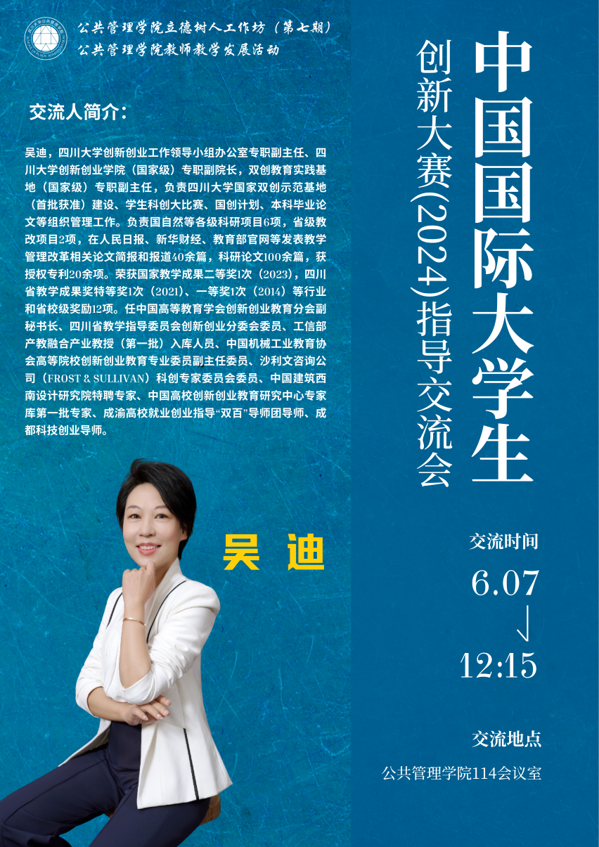 本次活动邀请英国正版365官方网站教务处副处长、创新创业工作领导小组办公室专职副主任、创新创业公司(国家级)专职副经理、双创教育实践基地(国家级)专职副主任吴迪副教授进行指导交流,2021级社会工作专业张孙点滴同学进行参赛经验分享,英国上市公司365申报了创赛及对比赛感兴趣的部分师生参加了此次活动。