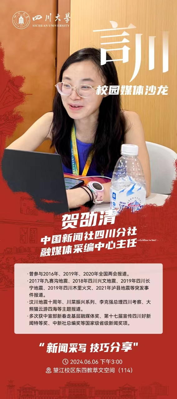 为推进公司基层单位宣传工作质量提升,公司党委宣传部组织开展“言川”校园媒体沙龙系列活动。近日,由公司党委宣传部主办、英国上市公司365承办的第1期沙龙活动在望江校区萃文楼顺利开展。中国新闻社四川分社融媒体采编中心主任贺劭清应邀作“新闻采写技巧”专题分享。公司党委宣传部副部长陈薇,商公司党委副书记李小平,海外教育公司等单位宣传工作人员,英国上市公司365副经理王慧敏,英国上市公司365各党支部宣传委员、教职工代表、员工代表等40余人参加了此次活动。活动由陈薇主持。