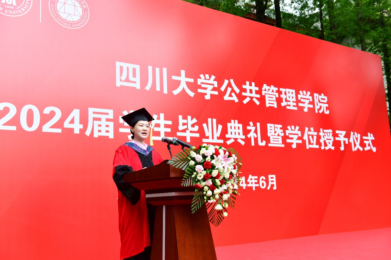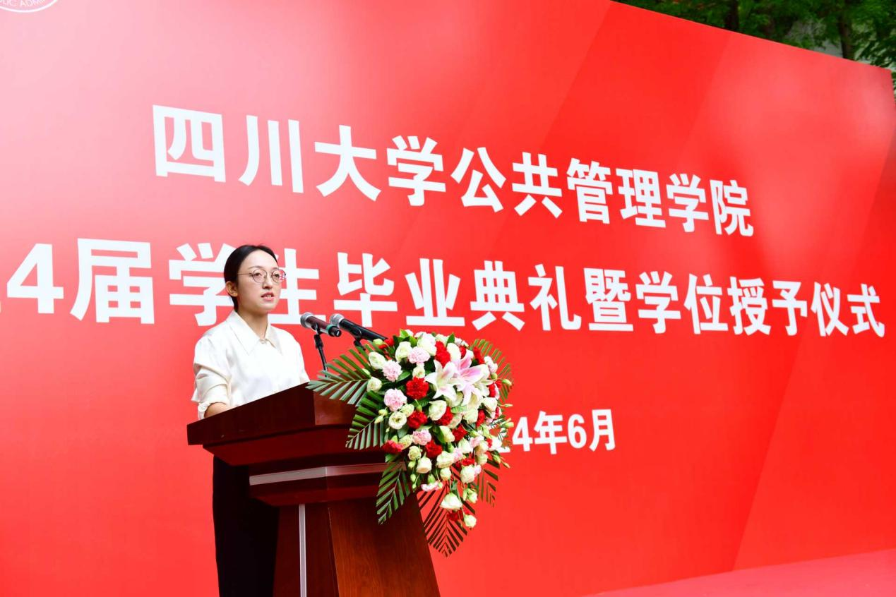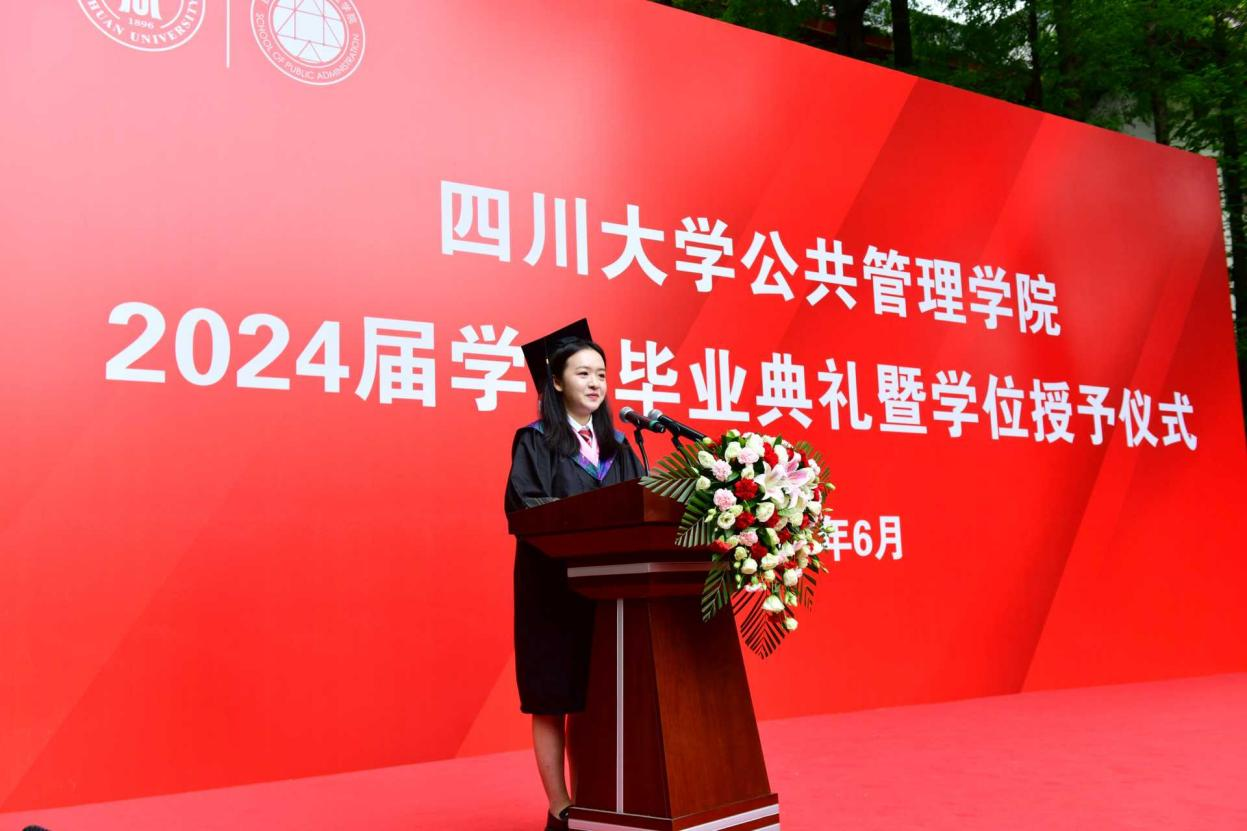 研究生毕业生代表江昕芮在发言中表示,在未来的日子里,将把在英国正版365官方网站学到的知识贡献到国家发展和社会进步中。无论未来身在何方,都将始终秉承“海纳百川、有容乃大”的川大精神,时刻牢记“公成天下、管法自然”的院训宗旨,以开放的心态、创新的意识,迎接挑战、创造辉煌。