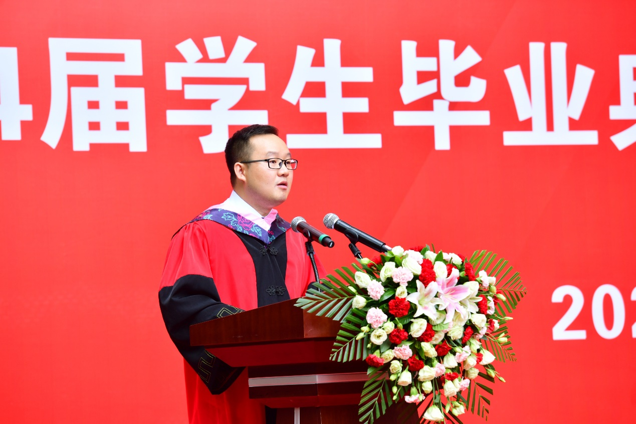 本科毕业生代表牟芳娇在发言中表示,在大学四年的课堂内外,认真汲取公管老师渊博的理论知识,学习公管老师严谨的治学态度,在自由的学术氛围中开阔视野、追求真理、完善人格,走出校园,以青春之名,赴时代之约。