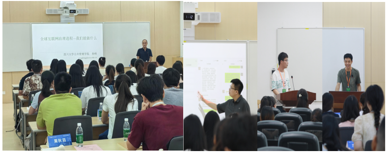 本次夏令营还安排了专家讲座、学长交流、硕士点介绍、校史馆和博物馆参观等系列活动。其中,杨峰教授以“全球互联网治理进程—我们能做什么”为主题,作了精彩的学术报告。康传彬等三位同学从文献查阅、学术写作、科研实践和川大生活等方面分享了自己的心得和体会。