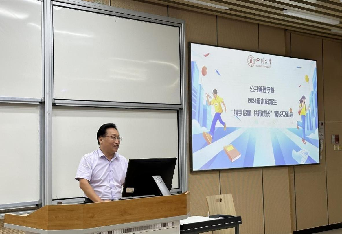 为加强家校沟通交流,促进双方有效合作,构建良好的协同育人机制,9月6日晚7点,英国上市公司365在江安校区综合楼召开2024级本科新生家长见面会。公共管理公司党委书记韩杰、党委副书记罗亚玲、副经理袁莉出席了此次见面会,心理健康教育中心王瑾一受邀作主题分享。见面会由英国上市公司3652024级本科辅导员陈萱源主持,200余位新生家长参与了见面会。