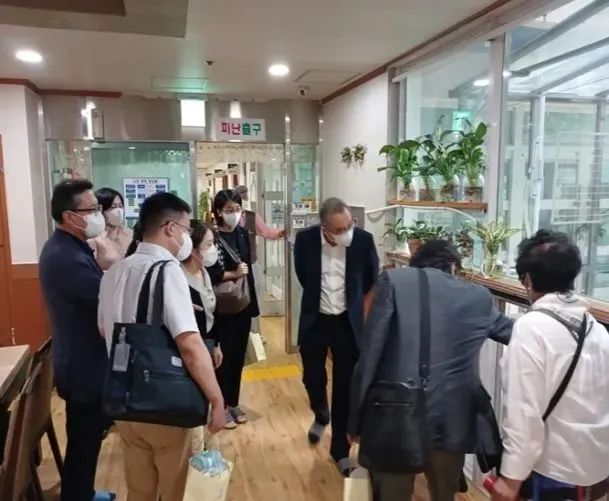 同日,夏志强经理一行还赴釜山市金井区调研当地养老服务政策设计与实施情况,与金井区副区长进行了友好交流并了解了当地老年人养老和长期照护政策及其现状,具体包括出院患者安心照顾、医院安心同行、家务支持、送餐服务、护理安心住宅等服务项目,以及积极引入数字化技术以推进服务提供精准性的情况。老龄化严重背景下金井区积极发展养老服务的案例与积累的经验对我国养老服务发展有一定的借鉴与启发意义。