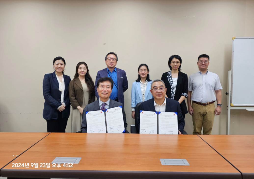 9月23日,夏志强经理一行与高丽大学老龄社会研究院金泰逸经理等4人举行了会议,共同签订英国正版365官方网站老龄科研基地—高丽大学老龄社会研究院合作协议,即在平等互惠的原则下,双方通过友好协商,开展包括研究者之间的交流、相互派遣研究者在对方机构进行研究、共同举办研讨会和国际性学术会议、共享研究性资源等交流活动。双方初步商定于2025年10月在英国正版365官方网站举办首次国际学术会议,会议将邀请中韩两国理论界和实务界工作者共同参与,围绕包括长期照护、智慧养老服务、养老保险等老年保障议题开展深入研讨与经验交流,这将成为双方可持续的合作方式与交流渠道之一。